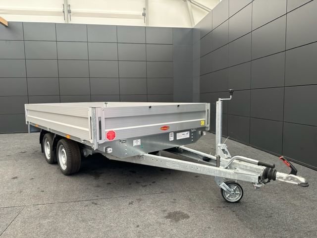 Remorque de voiture Böckmann chargeur surélevé HL-AL 3218/27F faible hauteur de chargement – Parois latérales en aluminium – Piquets d’angle amovibles – avec fermeture à longue portée – 6 pièces de supports d’arrimage – Roue jockey automatique – longueur du timon autoportant environ 1500 mm – faible hauteur de chargement – Dimensions intérieures LxlxH environ 3240x1800x350mm – Hauteur de chargement environ 660 mm – Poids total autorisé 2 700 kg – Poids 554kg – Charge utile 2 146 kg.